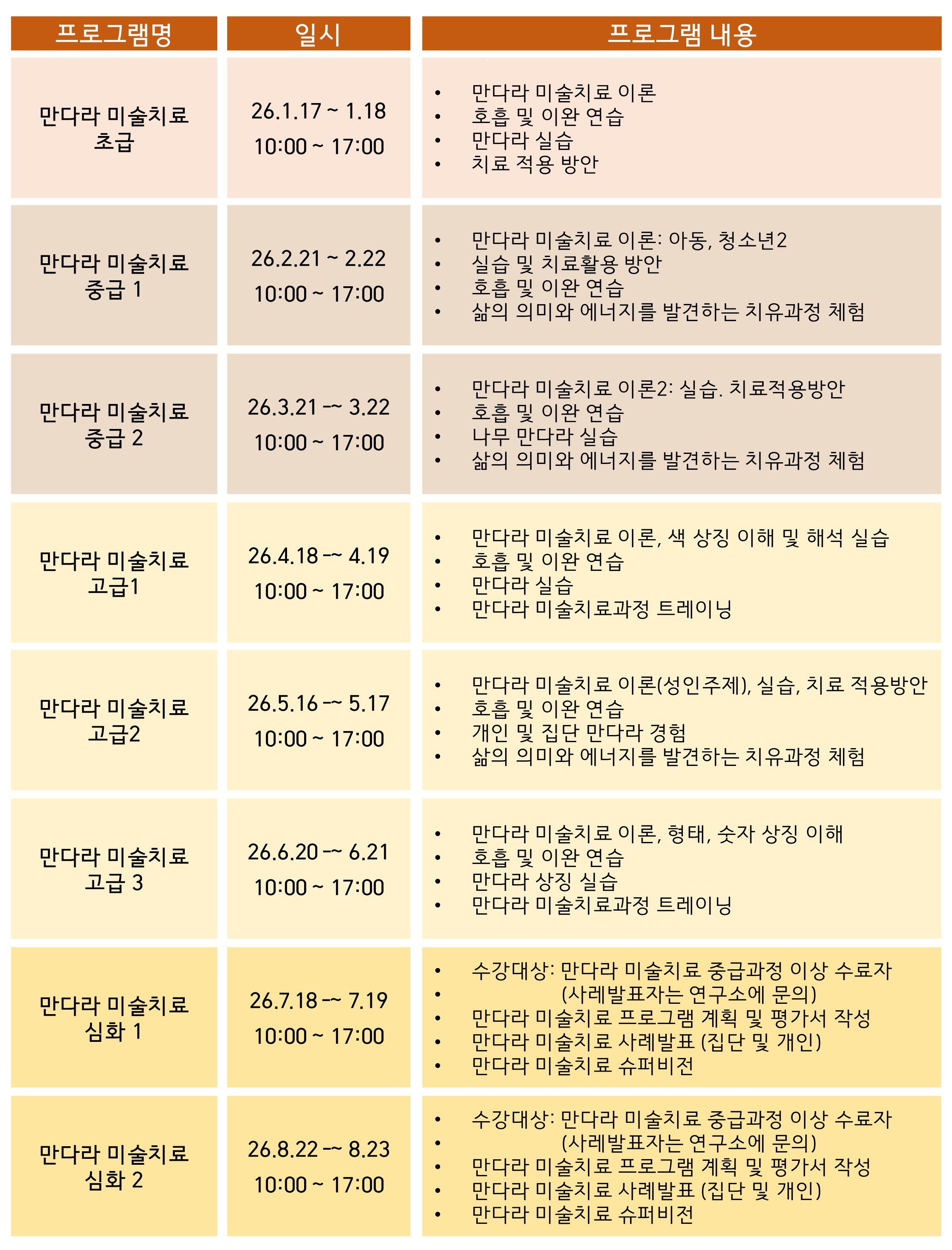 2026년 만다라 미술치료 프로그램 안내입니다 :)