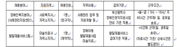 부산광역시장애인종합복지관에서는 함께의 가치를 통해 행복한 세상을 만들어 나가는 함께 성장하는 전문 장애인복지관으로, 함께 근무할 유능한 인재를 채용하고자 아래와 같이 채용공고를 실시합니다.