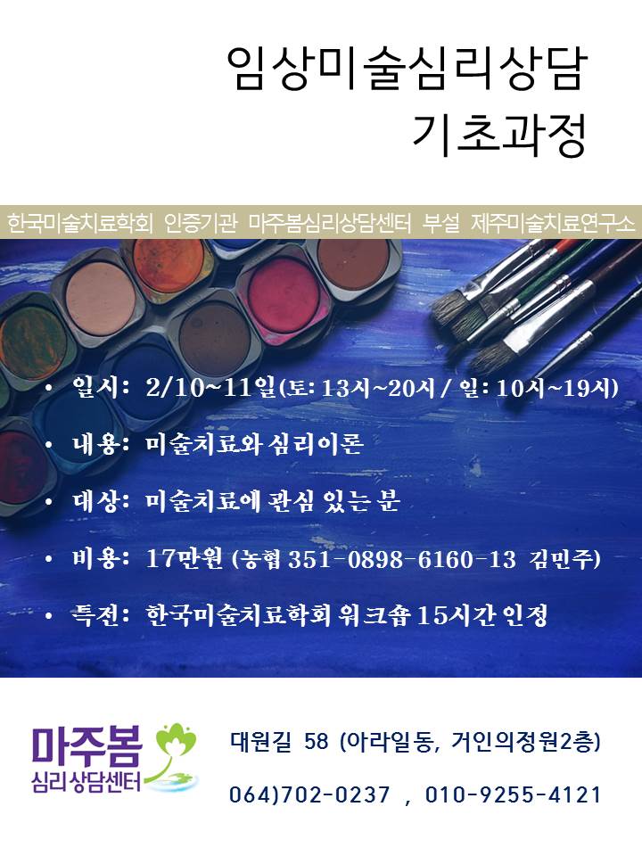 제주도에 위치한 마주봄심리상담센터의 2월 교육일정 안내입니다.