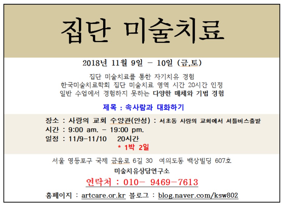 ◎ 문의: 010-9469-7613(미술치유상담연구소) www.artcare.or.kr