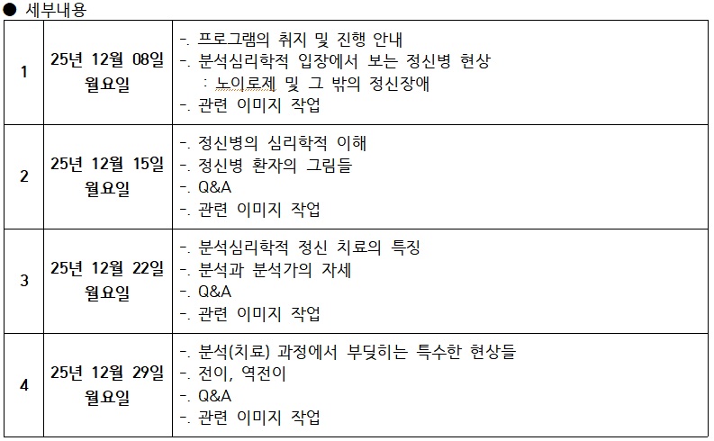 3) 일시 : 2025년 12월 매주 월요일 오전 10시 ~ 오후 1시