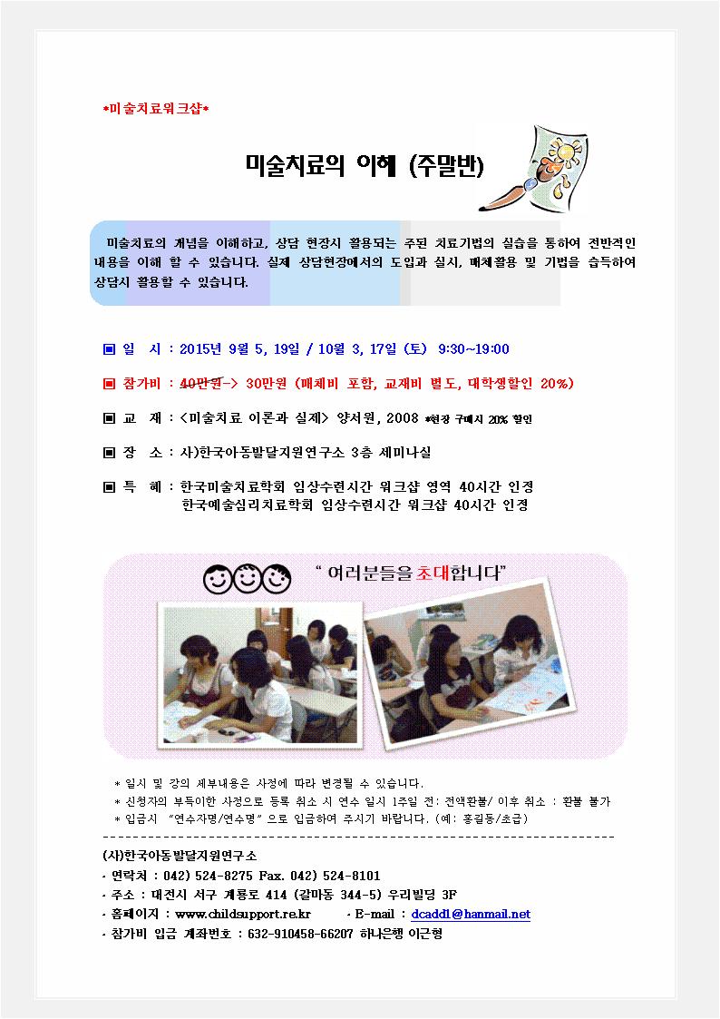 *미술치료워크샵* 미술치료의 이해(주말반)