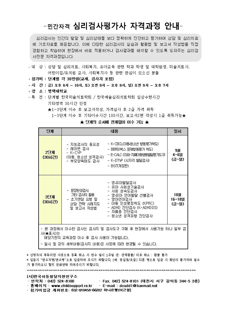 *심리검사 워크샵(경기지역)* 선착순 접수중!
