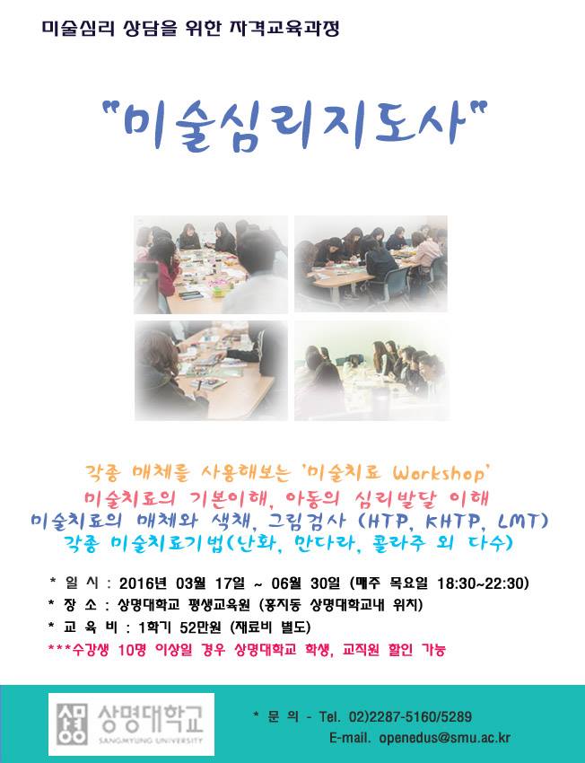 2016년도 상반기 상명대학교 미술심리지도사 교육과정 3월17일 개강!!(한국미술치료학회 90시간연수 인정)