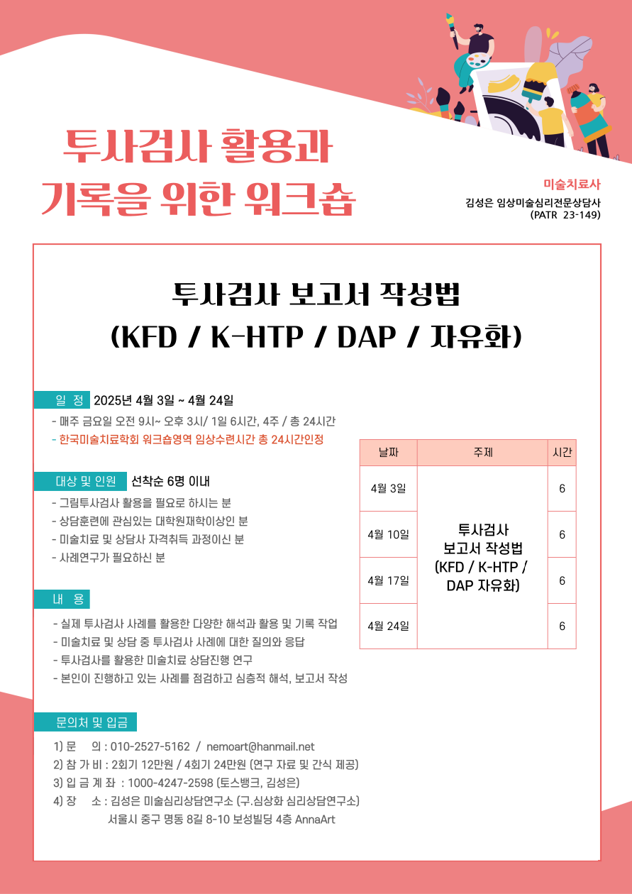 5. 내용 : 미술치료 상담사의 특화된 투사검사에 대한 심층적 연구를 위한 워크숍입니다.