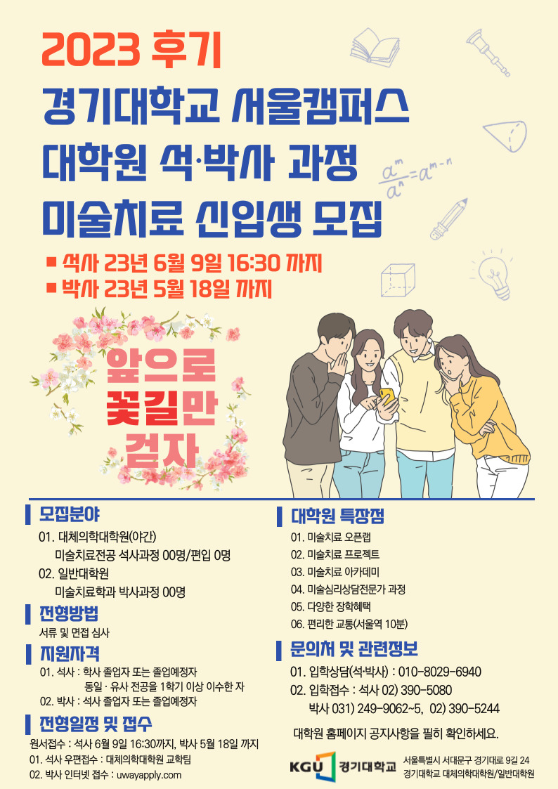 경기대학교(서울캠퍼스) 대학원 석사, 박사과정 미술치료 후기 신(편)입생 모집
