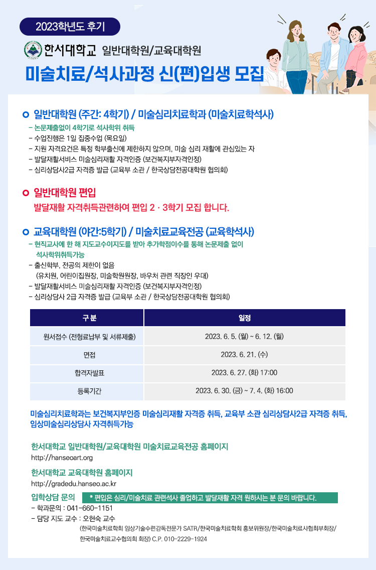 한서대학교 대학원 2023-2 미술치료 신입. 편입생모집