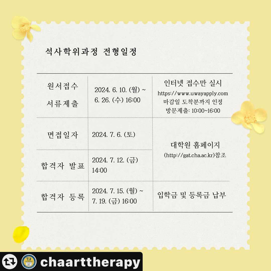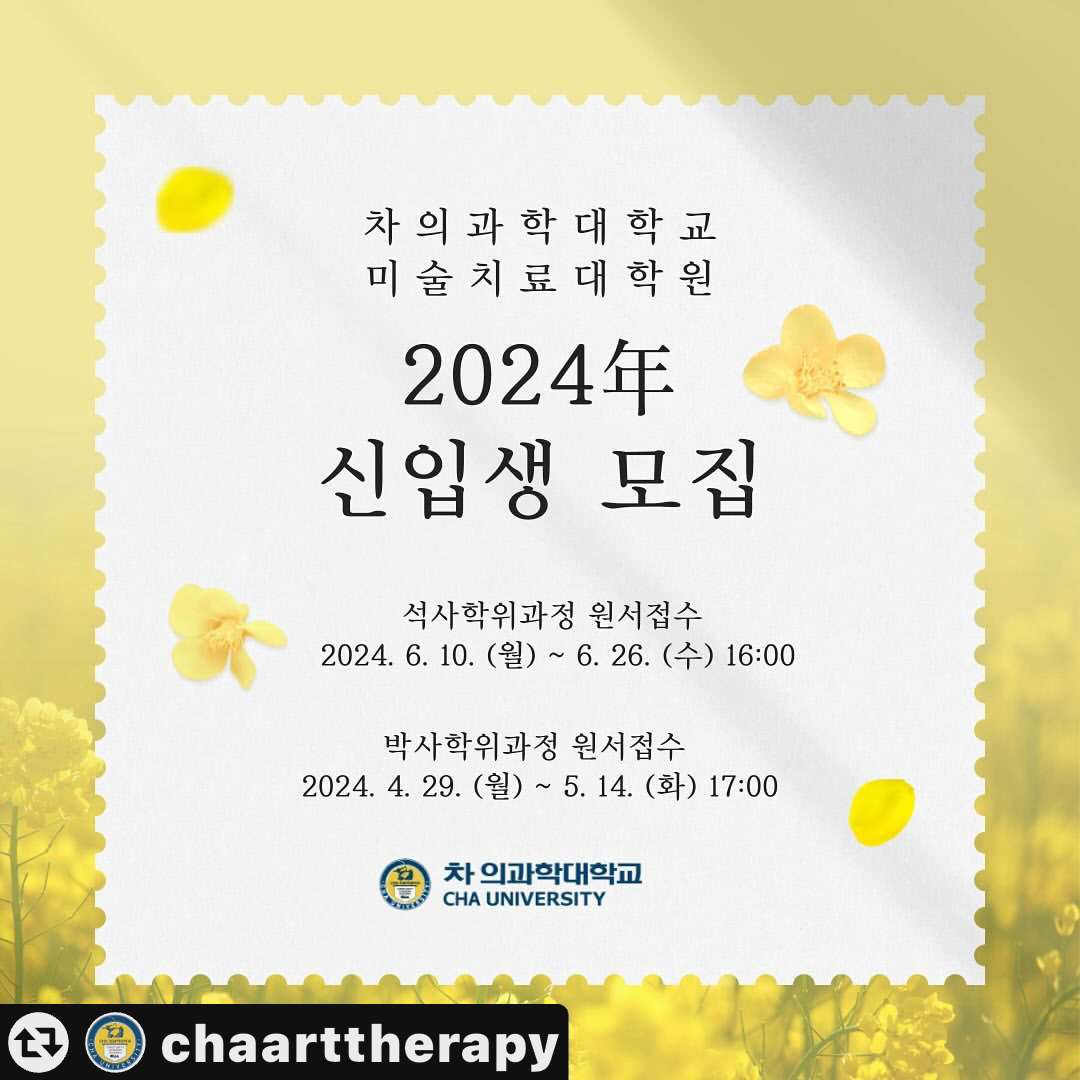 ⭐️석사, 박사 과정 신입생 모집⭐️차의과학대학교 미술치료대학원