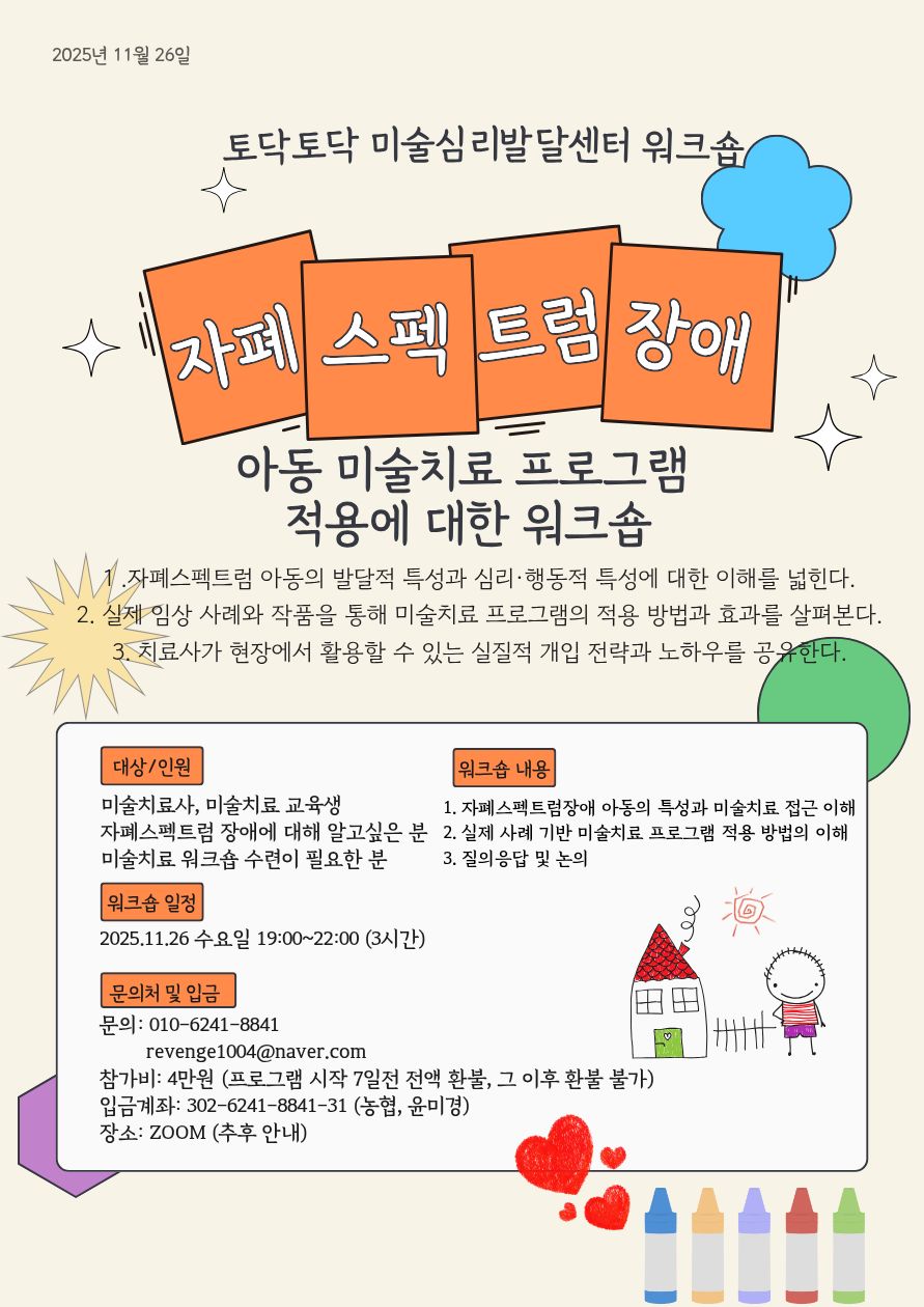 (ZOOM) 11/26 자폐스펙트럼장애아동 미술치료 프로그램 적용에 대한 워크숍