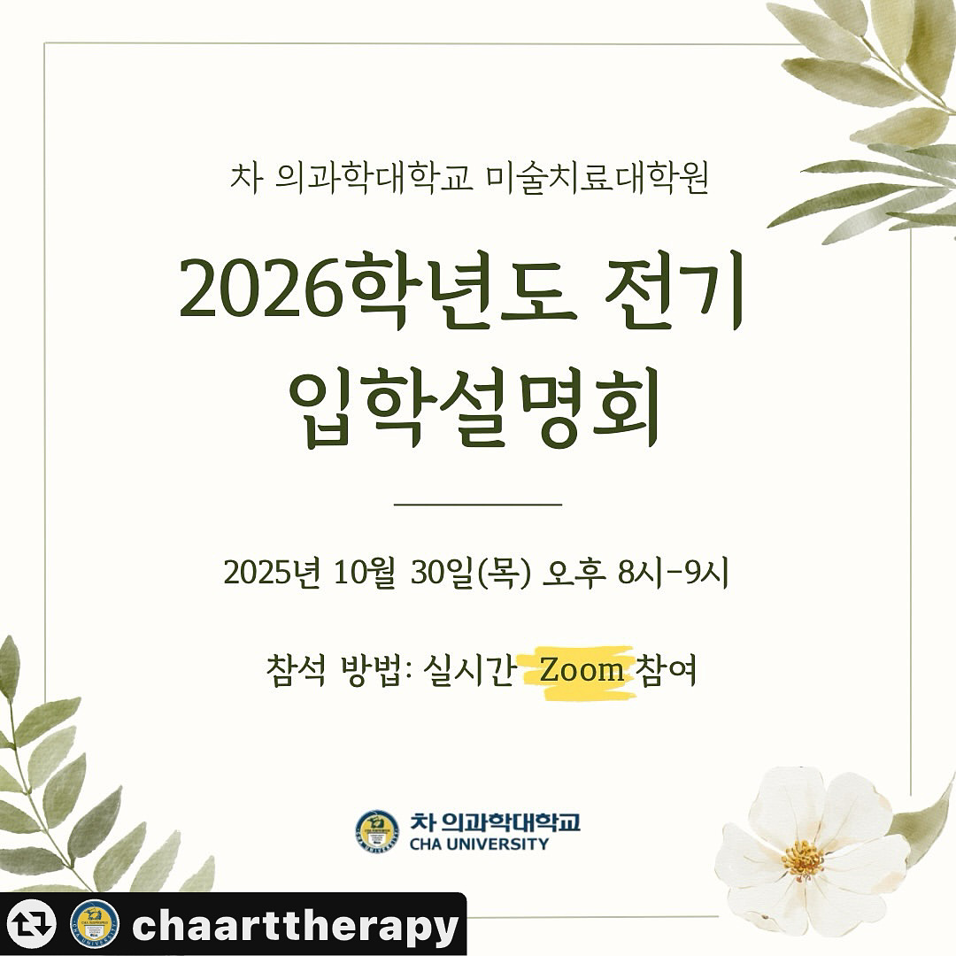 ★2026년도 차의과학대학교 미술치료대학원 박사/석사과정★비대면 입학설명회★