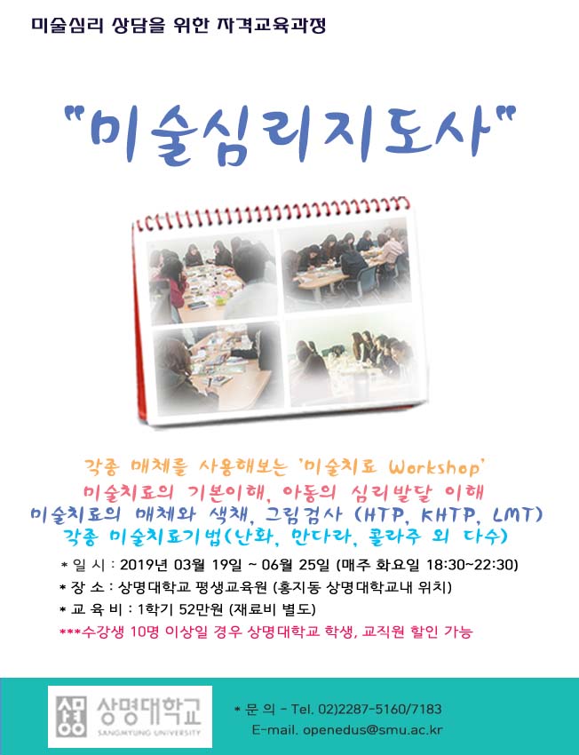 <상명대학교 평생교육원> 2019년 1학기 미술심리상담을 위한 자격교육과정!!