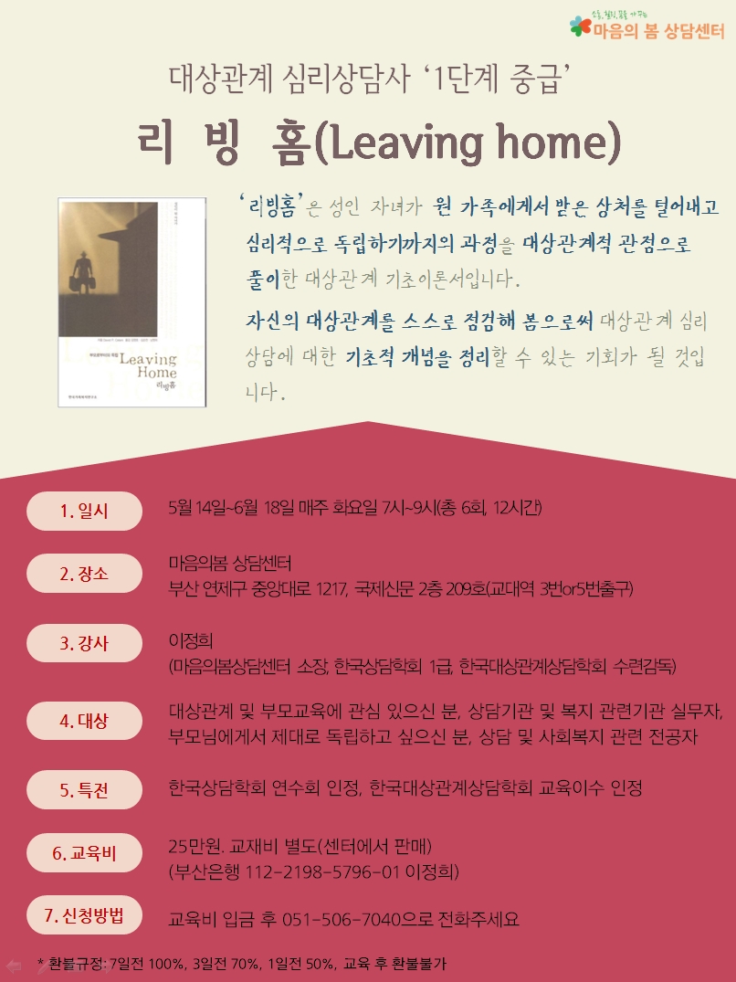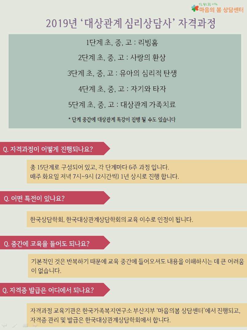[인원모집] 대상관계 심리상담 1단계 중급과정 5월 개설!