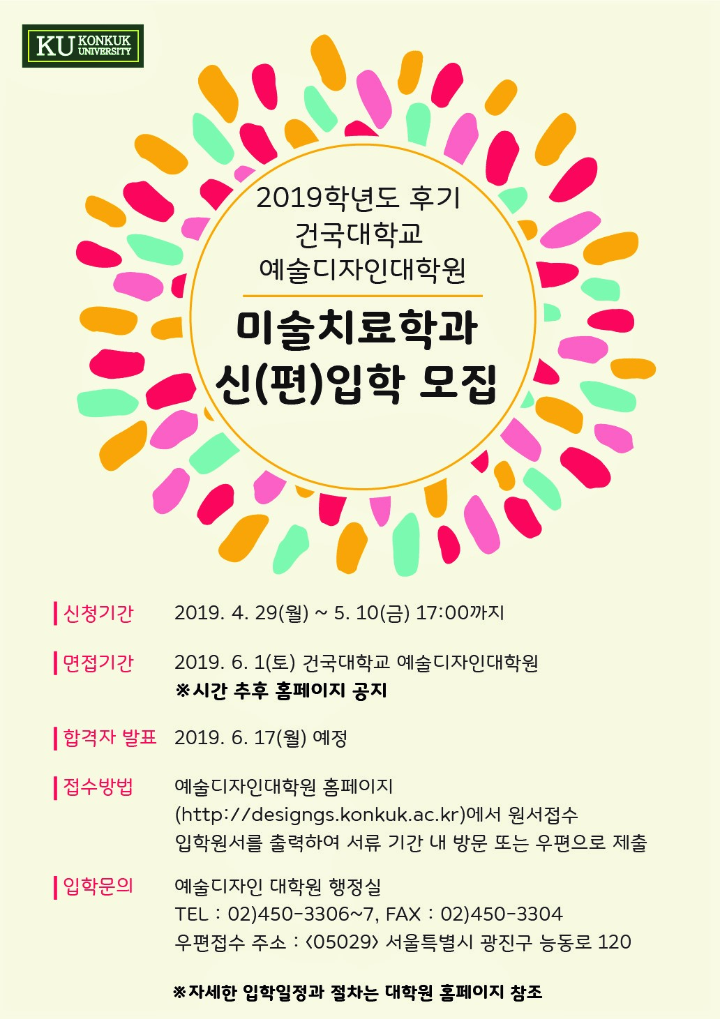 2019학년도 전기 건국대학교 예술디자인대학원 미술치료학과신(편)입학 원서접수(6월1일 토요일)