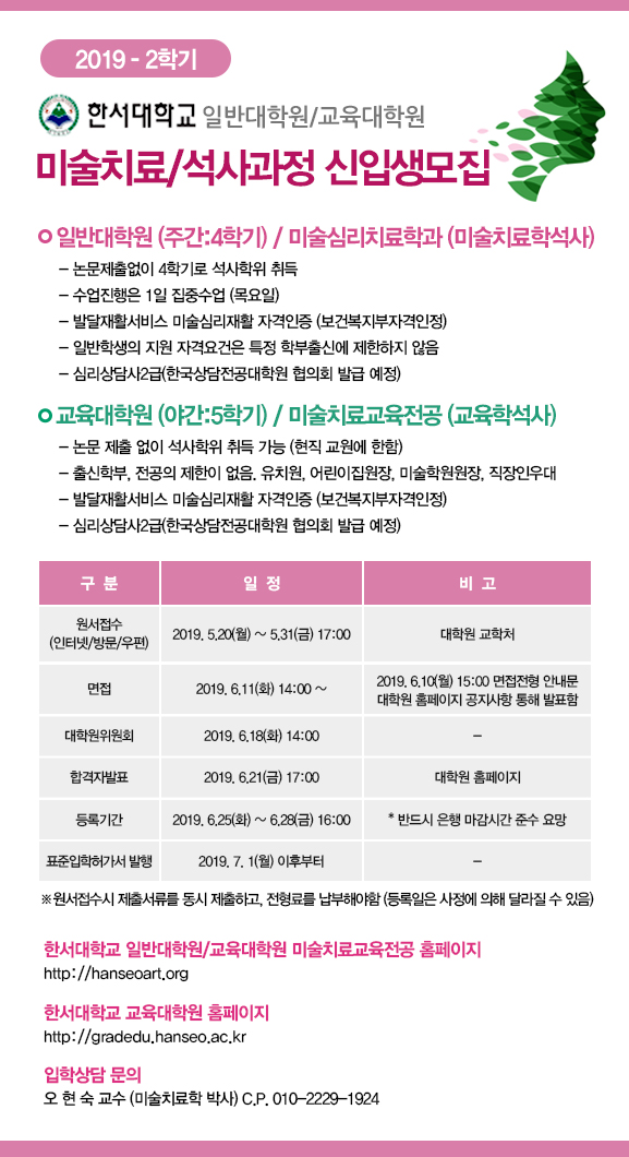 2019-2 한서대학교 대학원 미술치료 신입생모집