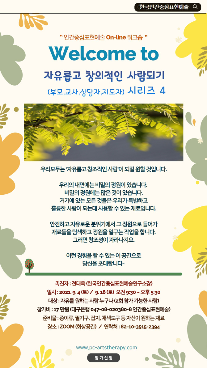 9월 온라인 인간중심표현예술 워크숍