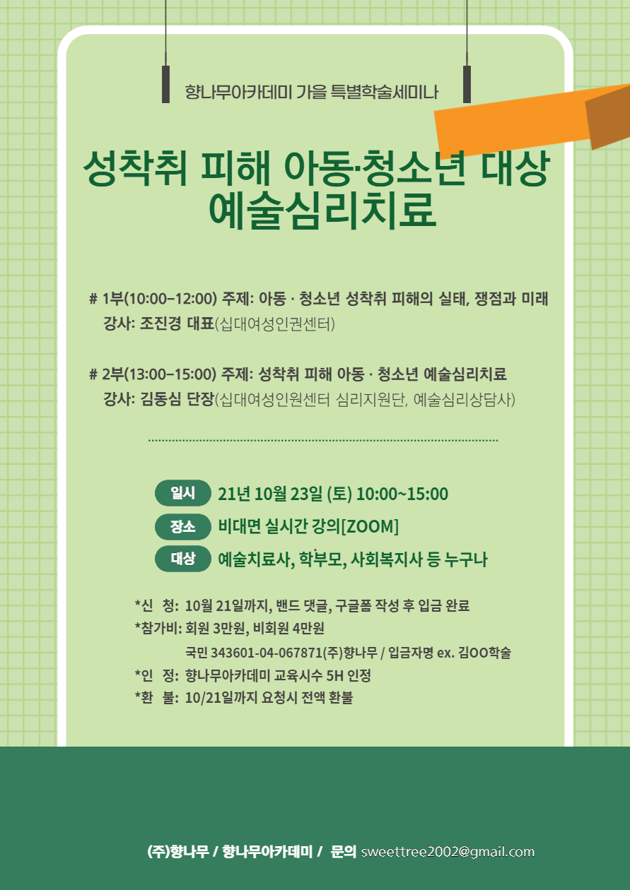 성착취 피해아동 청소년 대상 예술심리치료 학술세미나착(재학생 할인 안내)
