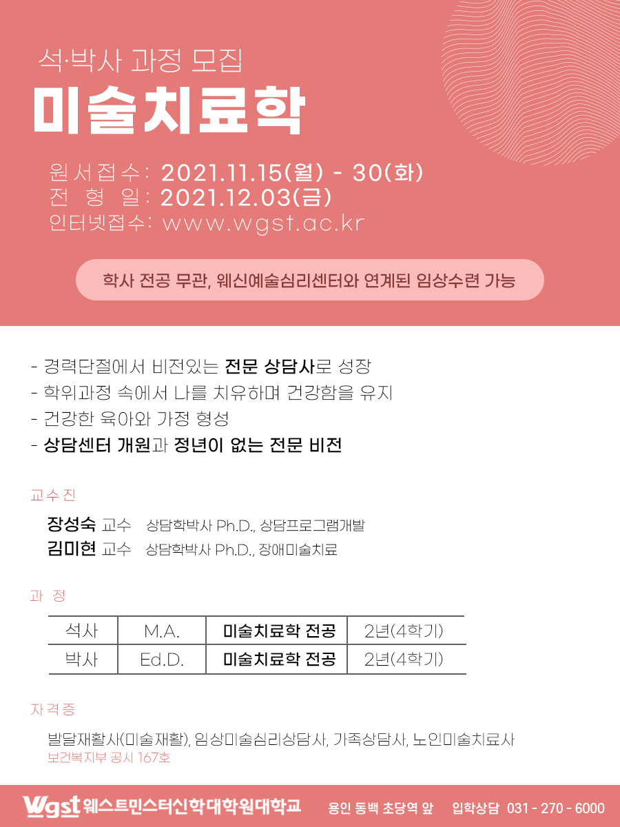 2022년 1학기 웨스트민스터신학대학원대학교 신입생 모집